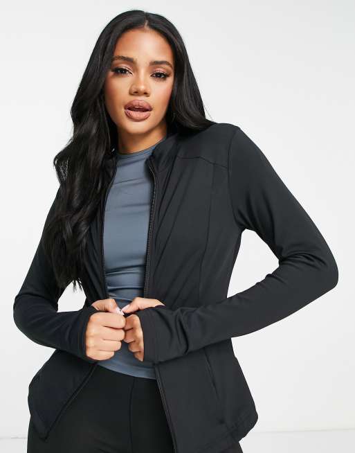Threadbare – Fitness – Zapinana na suwak czarna kurtka do biegania z tkaniny nurek