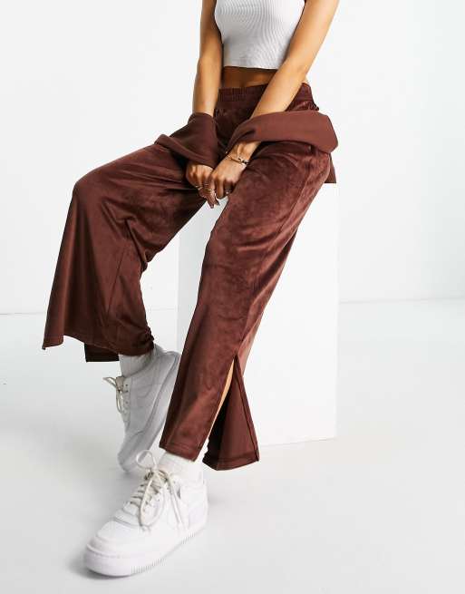 Threadbare – Florida – Czekoladowobrązowe welurowe spodnie z prostymi nogawkami i rozcięciem z boku