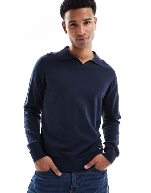 Threadbare – Granatowy dzianinowy top z długim rękawem i ozdobnym dekoltem