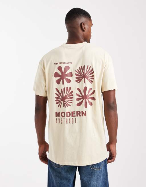 Threadbare – Jasnobeżowy T-shirt z materiału z dużą zawartością bawełny z nadrukiem na plecach