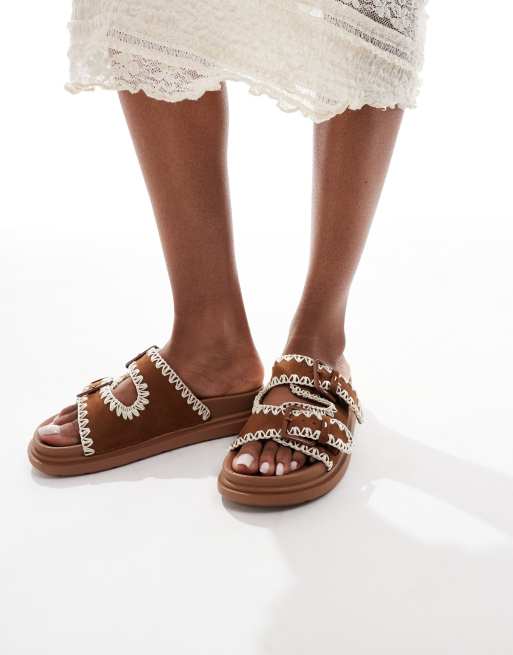 Threadbare – Jasnobrązowe płaskie sandały z dwoma paskami