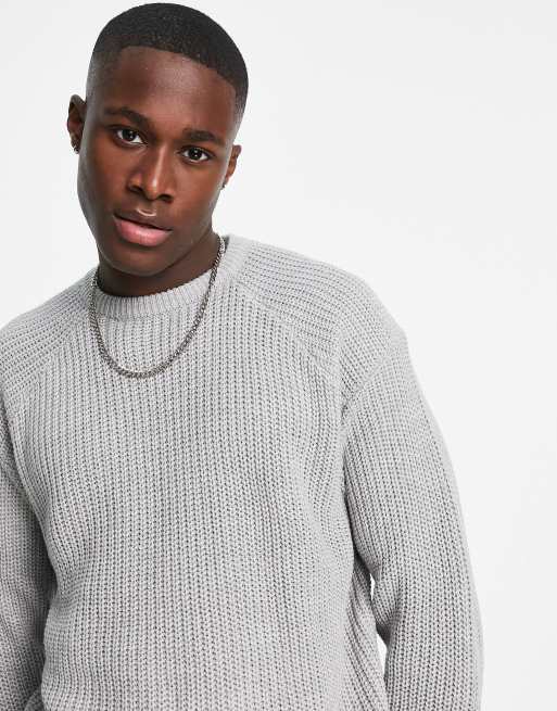 Threadbare – Jasnoszary sweter oversize z dzianiny w grube prążki