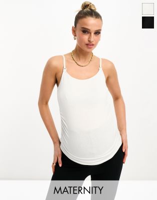 Threadbare Maternity – Zestaw 2 topów na ramiączkach w kolorze czarnym i białym z funkcją karmienia