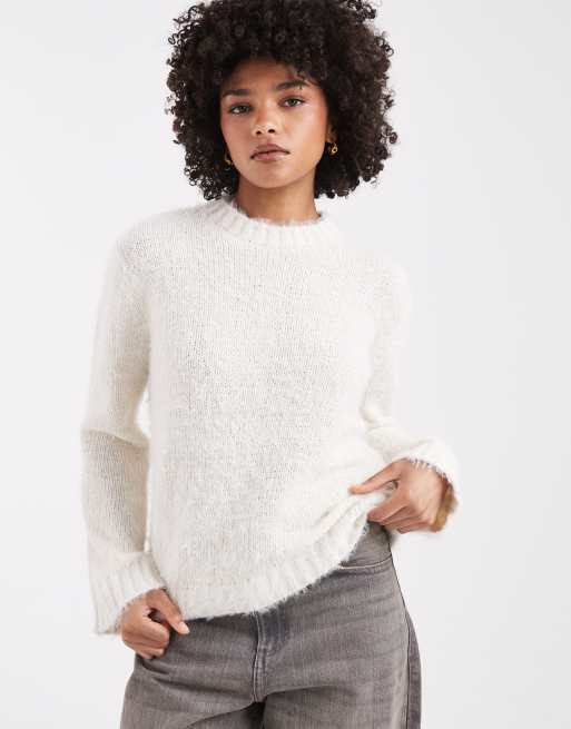 Threadbare – Miękki sweter z okrągłym dekoltem z puszystej dzianiny w kolorze ecru