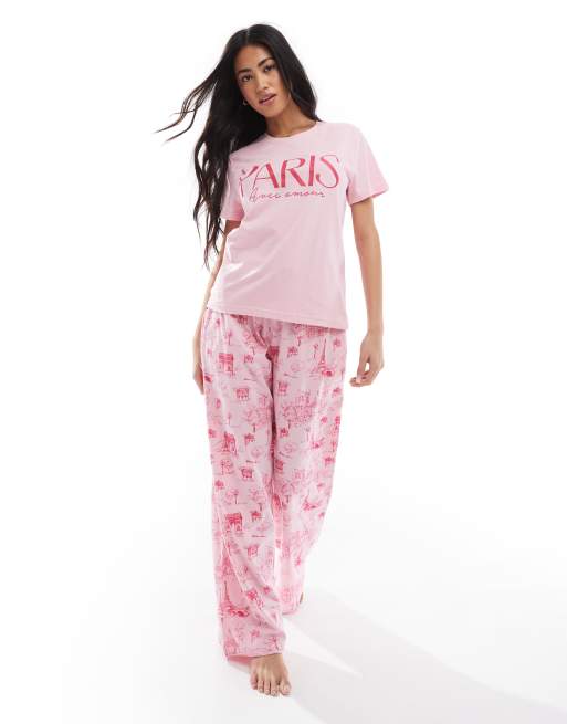 Threadbare – Różowa piżama we wzór z napisem „Paris”