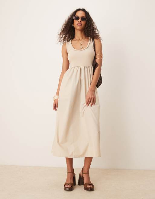 Threadbare – Sukienka maxi z dekoltem w kształcie U w kolorze taupe