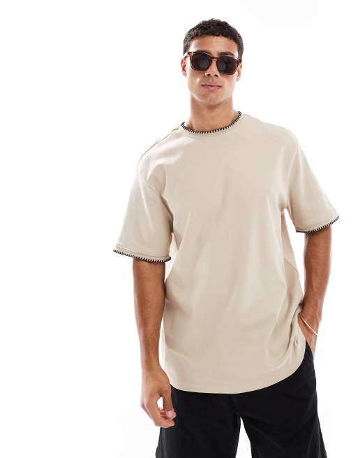 Threadbare – Szarobeżowy T-shirt oversize z materiału 200 g/m² o gramaturze z dużą zawartością bawełny