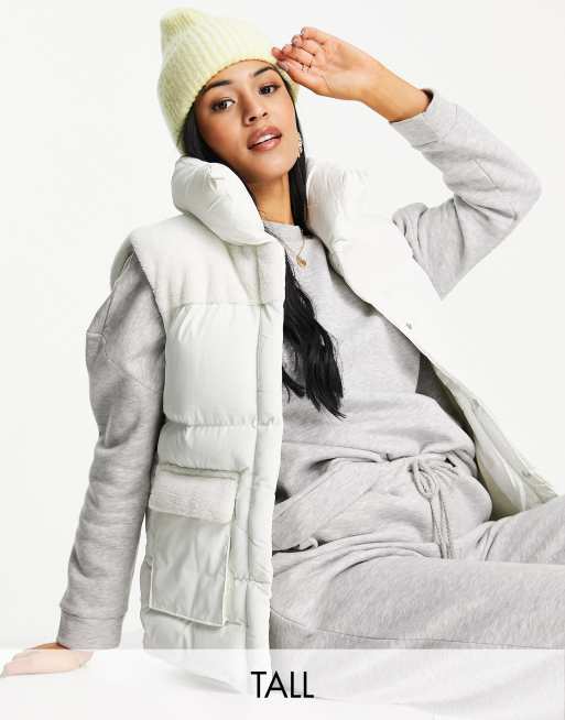 Threadbare Tall – Apple – Biały ocieplany bezrękawnik z kożuszkiem