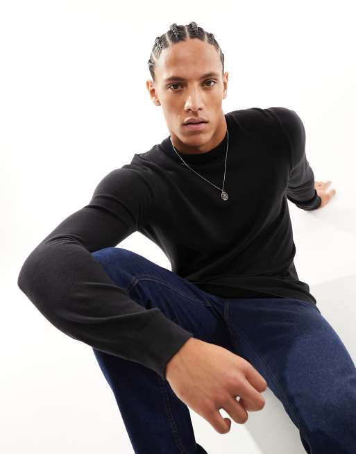 Threadbare Tall – Czarny bawełniany sweter z okrągłym dekoltem
