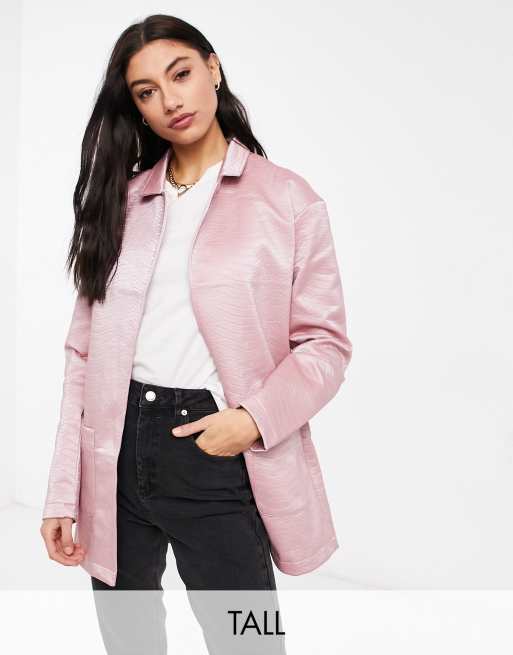 Threadbare Tall – Tayla – Różowa marynarka z poliuretanu w wężowy wzór