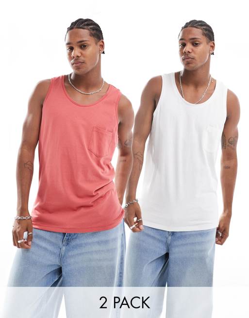 Threadbare – Zestaw 2 podkoszulków z kieszonką w kolorach złamanej bieli i bladoczerwonym