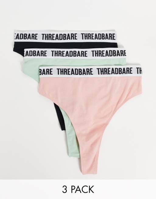 Threadbare – Zestaw 3 par stringów z podwyższonym stanem w kolorze różowym, zielonym i czarnym