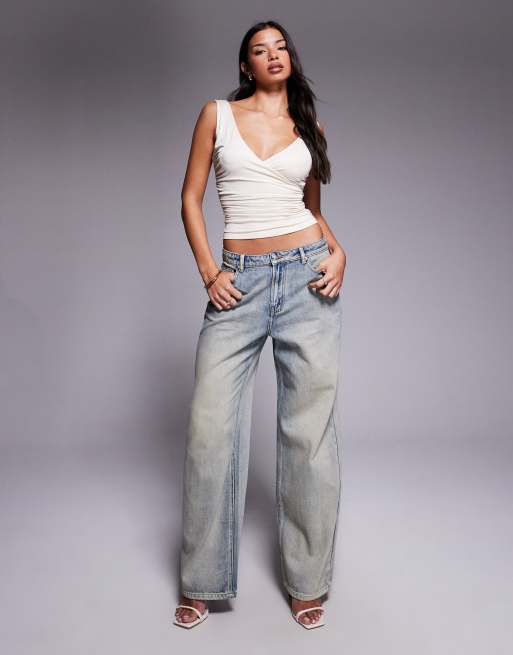 Tiger Mist – Zanthe – Jasnoniebieskie jeansy oversize z prostymi nogawkami, średnim stanem i nadrukiem motyla z tyłu