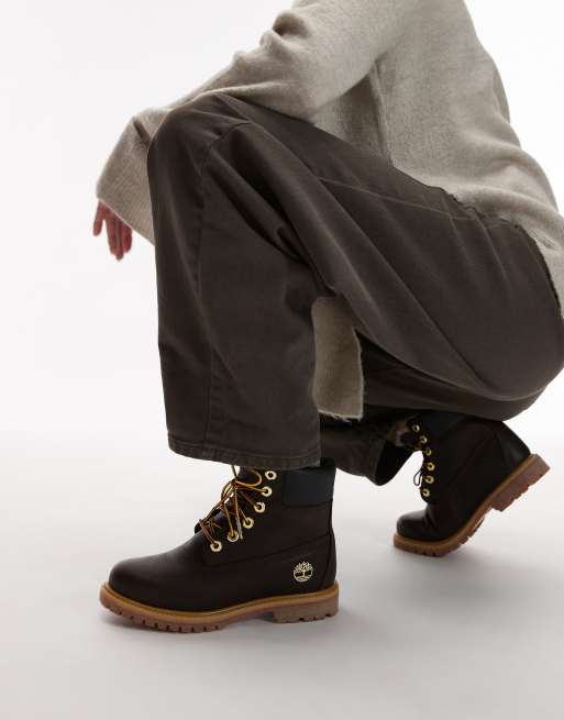 Timberland – Ciemnobrązowe skórzane botki o wysokości 6 cali
