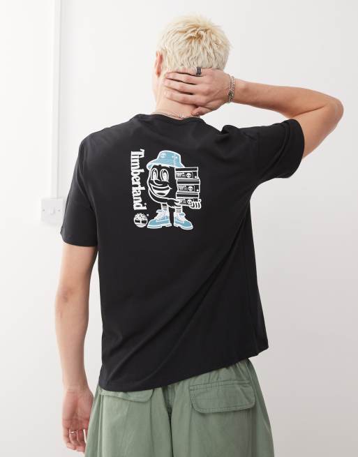Timberland – Czarny T-shirt z logo z pudełkiem na buty na plecach
