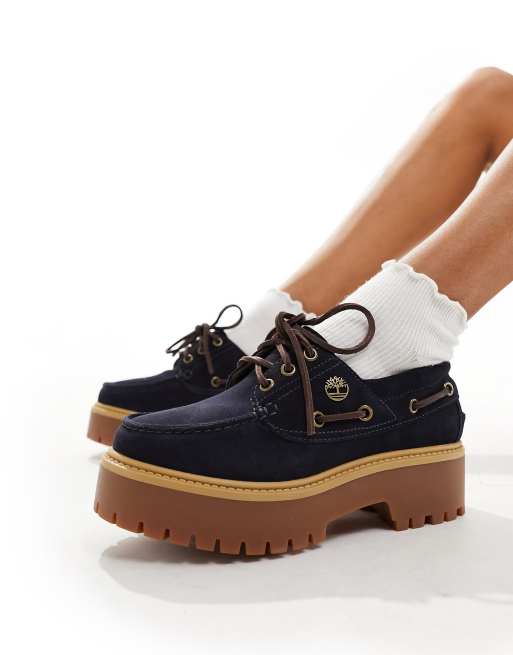 Timberland – Stone Street – Granatowe buty żeglarskie na platformie z trzema rzędami oczek