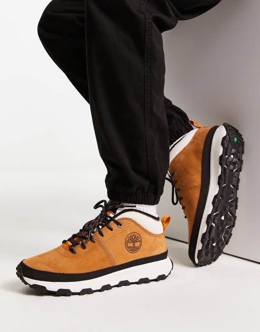 Timberland – Winsor Trail Mid – Brązowe skórzane buty sportowe do kostki z nubuku