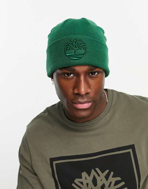 Timberland – Zielona czapka beanie z wyhaftowanym logo 3D w podobnym odcieniu