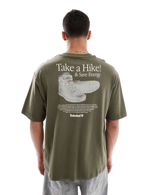 Timberland – Zielony T-shirt z nadrukiem „Take a Hike” na plecach – tylko w ASOS