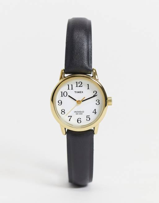 Timex – Czarny zegarek na skórzanym pasku