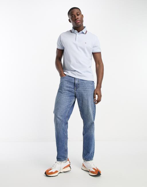 Tommy Hilfiger – 1985 – Niebieska dopasowana koszulka polo z logo z flagą