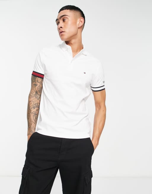 Tommy Hilfiger – Biała koszula polo z logo na rękawie
