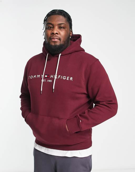 Tommy Hilfiger Big & Tall – Bordowa bluza z mieszanki bawełny z kapturem i wyhaftowanym logo