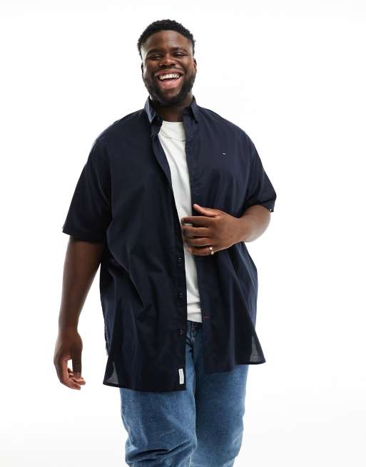 Tommy Hilfiger Big & Tall – Niebieska popelinowa koszula o regularnym kroju z krótkimi rękawami