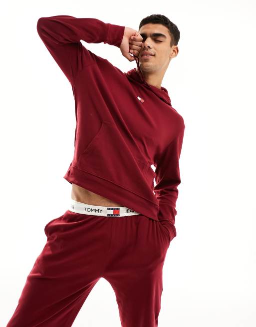 Tommy Hilfiger – Bordowa bluza z kapturem i prążkowanym logo
