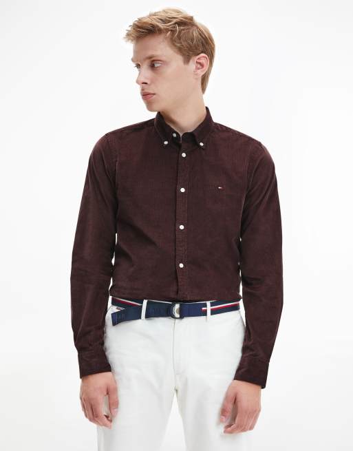 Tommy Hilfiger – Bordowa dopasowana koszula z elastycznego sztruksu z logo
