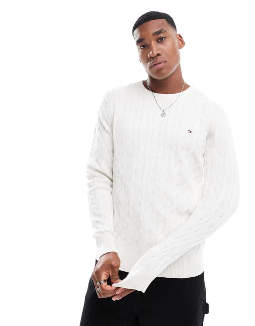Tommy Hilfiger – Classic – Dzianinowy sweter o warkoczowym splocie w kolorze złamanej bieli