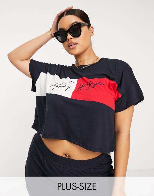 Tommy Hilfiger Curve – Krótki granatowy T-shirt plażowy z logo, część zestawu