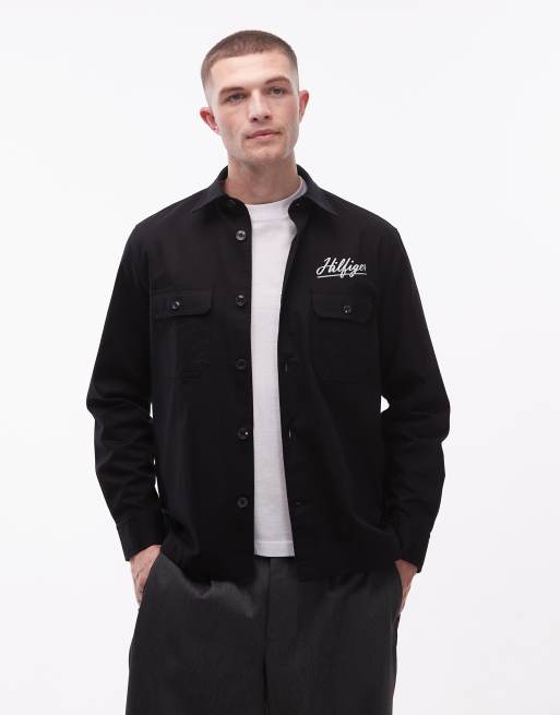 Tommy Hilfiger – Czarna koszula wierzchnia z graficznym logo na piersi
