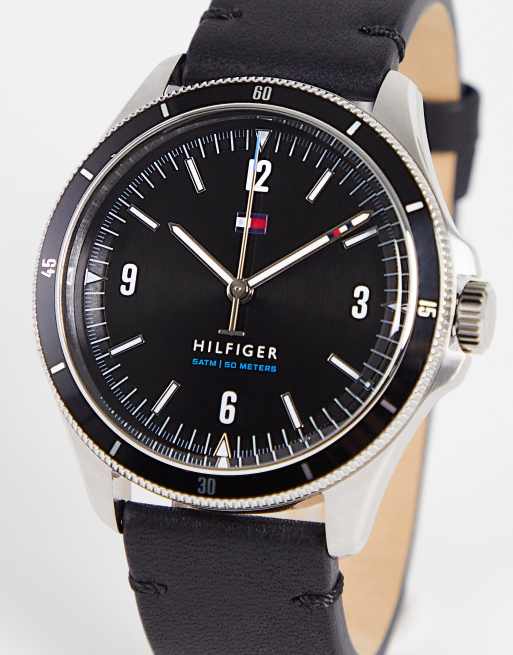 Tommy Hilfiger – Czarny męski zegarek na skórzanym pasku 1791904