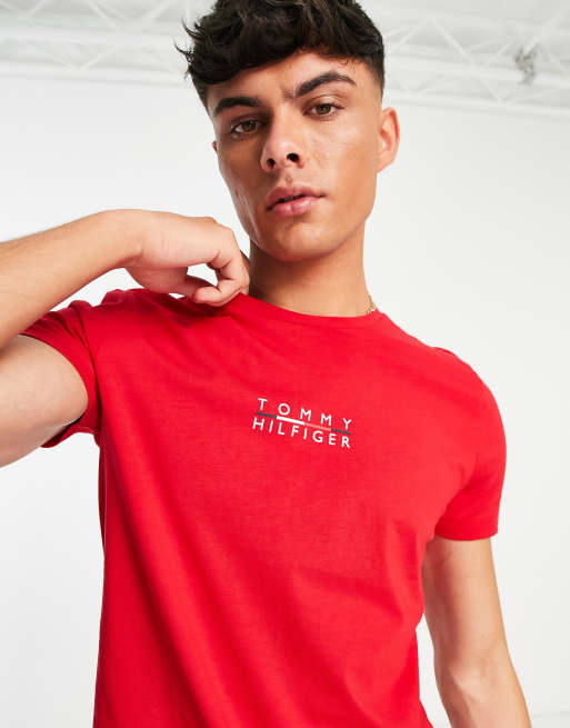 Tommy Hilfiger – Czerwony T-shirt z logo