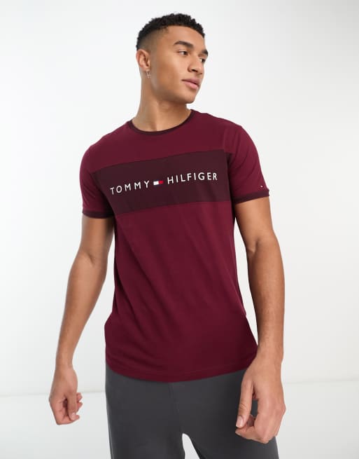 Tommy Hilfiger – Czerwony T-shirt z paskiem z logo z przodu