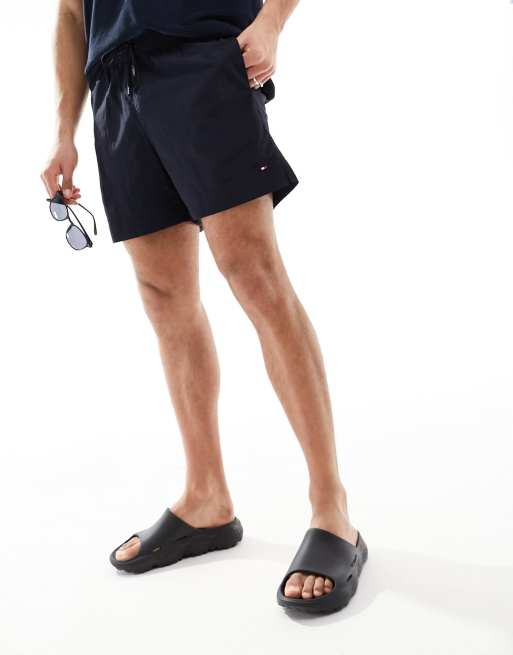 Tommy Hilfiger – Essential – Granatowe średniej długości szorty kąpielowe ściągane na sznurek