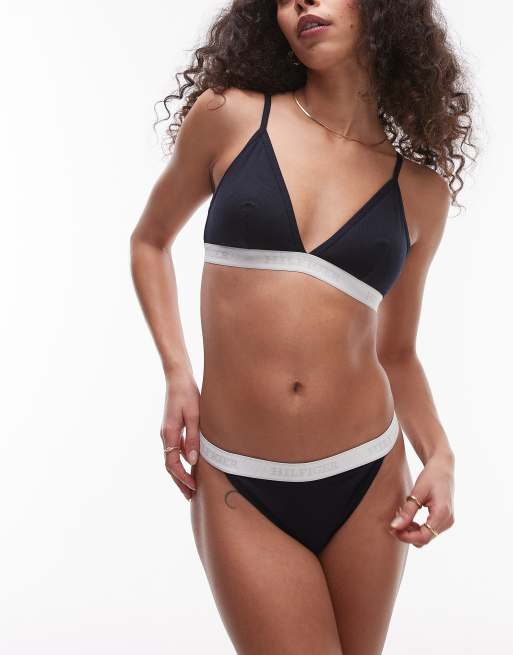 Tommy Hilfiger – Granatowa braletka z trójkątnymi miseczkami i białą taśmą z logo