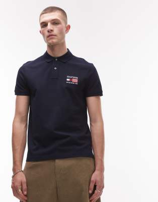Tommy Hilfiger – Granatowa koszulka polo o regularnym kroju z flagą