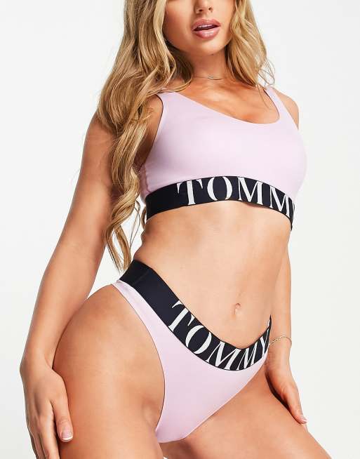 Tommy Hilfiger – Liliowe bardzo miękkie stringi z logo