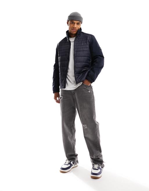 Tommy Hilfiger – Mix Media – Granatowa kurtka z wysokim kołnierzem