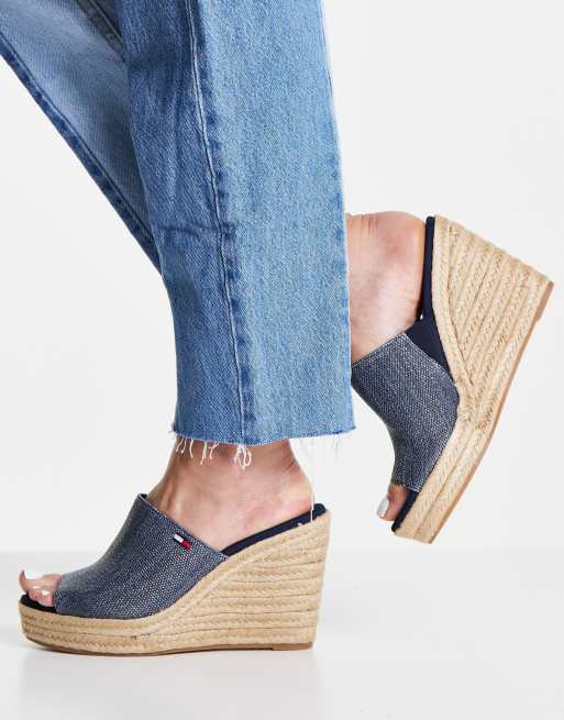 Tommy Hilfiger – Natural – Granatowe klapki na koturnie