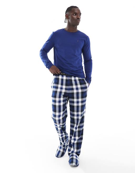 Tommy Hilfiger – Original – Niebieski zestaw podarunkowy: piżama i kapcie w kratkę