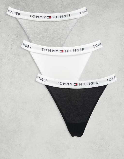 Tommy Hilfiger – Zestaw 3 par stringów typu tanga, w kolorach szarym, granatowym i białym