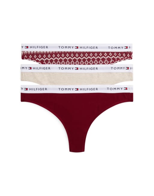 Tommy Hilfiger – Zestaw podarunkowy 3 par stringów w kolorach czerwonym, kremowym i w skandynawski wzór