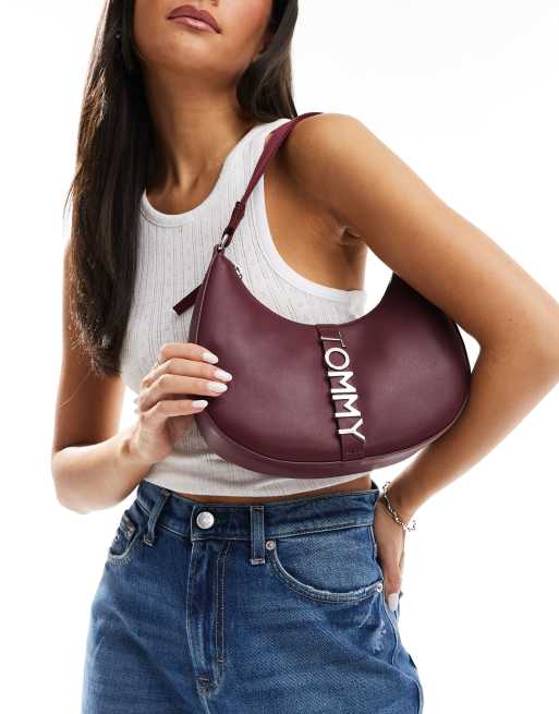 Tommy Jeans – Bordowa skórzana torebka na ramię z dużym logo
