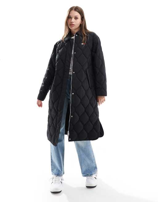 Tommy Jeans – Czarna pikowana kurtka o wydłużonym fasonie