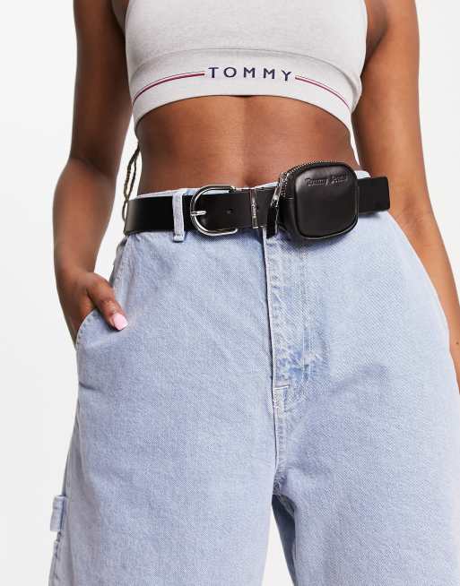 Tommy Jeans – Czarny skórzany pasek z saszetką zapinana na suwak