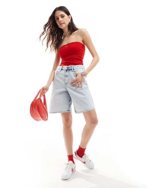 Tommy Jeans – Essential – Jaskrawoczerwony top z dekoltem bandeau