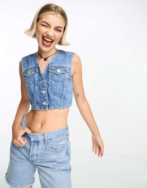 Tommy Jeans – Niebieska jeansowa kamizelka o krótkim fasonie